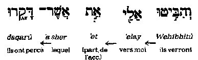 ils verront – vers moi – (part. de l’Acc.) – lequel – ils ont percé