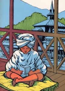 Le père de Yoseb avait acheté la « roue de prière » au Tibet où les gens ne connaissaient qu’une seule prière. Les Tibétains sont Bouddhistes et croient que s’ils font quelque chose de mauvais, ils meurent et renaissent sous la forme d’un serpent ou d’un âne. Cette idée faisait frissonner Yoseb. Etait-ce vrai ? Ses voisins au Cachemire n’avaient pas les mêmes croyances. Ils étaient Musulmans. Ils s’agenouillent pour prier en se tournant vers l’Est et ceci cinq fois par jour. « Il n’y a qu’un seul Dieu, Allah, et Mahomet est son prophète », récitaient-ils de leur voix chantonnante.